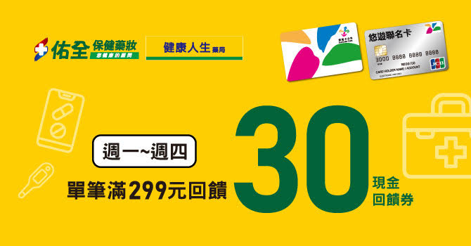 2.單筆滿299元回饋30元悠遊付現金券